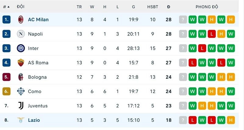 Ngược lại, Lazio trong lần tái hợp với HLV Maurizio Sarri vẫn đang loay hoay tìm lại sự ổn định. Trong 5 trận gần nhất, họ thắng 2 nhưng cũng để thua 2 trận quan trọng trước các đội bóng thành Milano. Theo đánh giá từ kèo nhà cái, lối chơi kiểm soát bóng của Lazio thường bế tắc khi gặp các đối thủ chơi phòng ngự phản công khoa học. Dù có lợi thế sân nhà Olimpico, nhưng tâm lý thất bại trong trận Lazio vs AC Milan cách đây ít ngày sẽ là rào cản lớn cho đội bóng thủ đô.